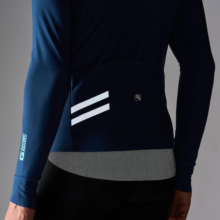 The G-Shield Thermal Long Sleeve Jersey is designed to keep you warm in cool and cold conditions and dry in wet conditions by limiting fabric saturation. Built-in water repellent treatment fuses to the fibers of the fabric to provide a hydrophobic coating that protects you against inclement weather. The fleece-lined thermal Blizzard fabric provides a soft, flexible, and aero fit that contours to the body.